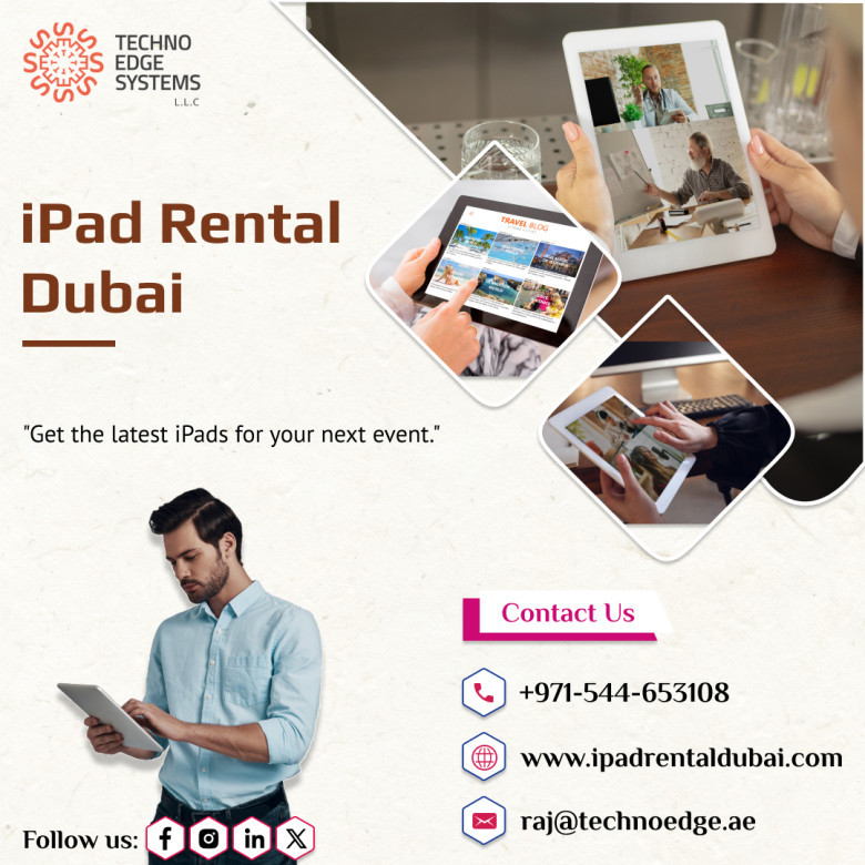 If you want iPad hire At Techno Edge Systems LLC, we have high volumes of iPads for rentals available for short term hire to use at corporate events. We stock a large quantity of iPad Rental in Dubai at affordable Cost. Nationwide delivery. Call at +971-54-4653108 for more info.